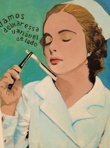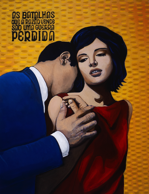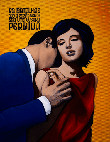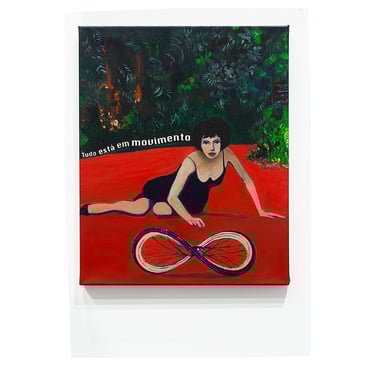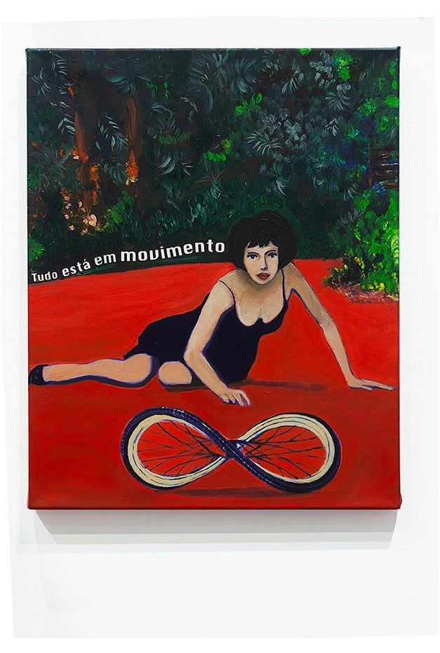 A pintura pode ter muitas camadas, não apenas de tinta, mas de significado. Nesta obra, a imagem da personagem no chão, à frente da roda da bicicleta de seu marido que acabou de ser atropelado, contém inúmeras referências. A cena, inspirada em uma imagem do filme A Noite de Antonioni, também faz referência à clássica pintura O Mundo de Cristina (1948), de Andrew Wyeth. Nessas referências, assim como em História Errada , está em jogo a ideia de imobilidade versus movimento, o inexorável passar do tempo, no qual o mundo continua a se mover e mudar, mesmo quando alguém está fisicamente paralisado. A personagem em História Errada captura, neste momento difícil de sua trajetória, a essência de uma postura antifrágil – a de alguém que sabe que os eventos da vida são em grande parte imprevisíveis e que é necessário estar em movimento para lidar melhor com eles. Ela decide reparar o fato de seu marido ter sido atropelado e percebe que esse movimento fará girar a roda da vida, sendo preferível à lamentação, à tristeza ou à rigidez.