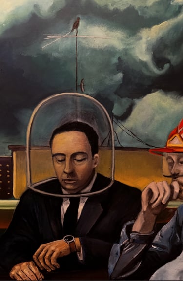 Na obra Além da Meta , da série Infiltração , um homem auto intitulado ASA (Anti-Social) , encarna o individualismo extremo. Sua "bolha" não é um refúgio, mas a negação do diálogo e da complexidade do mundo. O ser-bolha impõe uma visão reducionista, sem nuance, profundidade ou sutileza, na qual o outro é ou concordância ou negação. Sua incomunicabilidade é um projeto de poder político, uma infiltração lenta e corrosiva que mina os laços sociais , preparando o terreno para novas ordens. Nessa obra fictícia que mescla pintura e ficção, o ASA não é apenas um personagem, mas um operador de tendências, um exemplo comportamental. Em sua bolha, símbolo de sua rejeição ao coletivo, seu desejo é tornar-se, paradoxal e autodestrutivamente, um modelo a ser seguido.