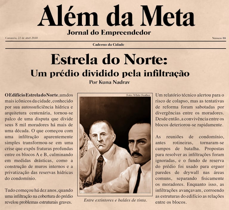 No centro da narrativa está o icônico Edifício Estrela do Norte, um espaço fictício autossuficiente em água, mas fragilizado por tensões internas. Quando um problema ameaça sua estrutura, a solução adotada pelos moradores revela-se ainda mais perigosa do que o próprio desafio inicial. Essa metáfora reflete questões amplas sobre as dinâmicas frágeis que sustentam sistemas sociais.